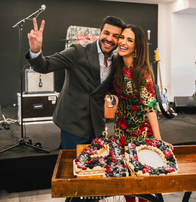 Un cumpleaños en el que Miguel -impecable con un traje negro y camisa blanca, prescindiendo de corbata-disfrutó como nunca de dos de sus grandes pasiones: la gastronomía, encarnada por un exquisito menú y una impresionante tarta de frutas y merengue con forma de 40, y la música, ya que contó con la actuación en directo de uno de sus grupos musicales y, haciendo gala de su espontaneidad, no dudó en subirse al escenario con Paula (con la que vive una permanente luna de miel desde que comenzaron su relación el 31 de diciembre de 2017) para sorprender a sus invitados cogiendo el micrófono y arrancándose a cantar.