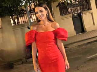 Acompañada por su pareja, Miguel Torres, la actriz ha apostado todo al rojo con el vestido ideal para convertirse en la invitada perfecta tanto en una cena de verano como en un evento especial. Un diseño midi de popelín con cuerpo drapeado, escote bardot y manga globo que realza a las mil maravillas su silueta y su bronceado.