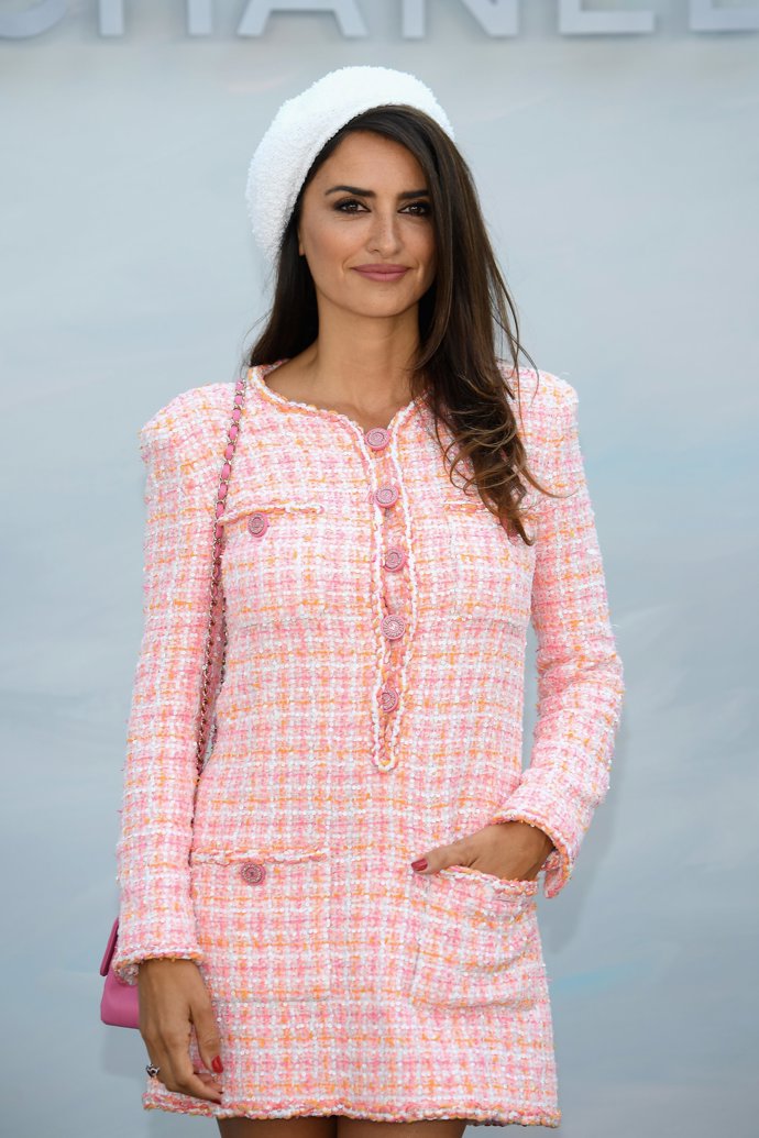 Son muchas las ocasiones en las que hemos visto lucir piezas de la maison francesa, desde los Oscar a los Goya o el Festival de Cannes, donde desfiló tanto con vestidos vintage como de temporada de la firma. Además, es imposible borrar de nuestro recuerdo a la actriz con un impresionante diseño negro y cadenas doradas de Chanel en la película Los Abrazos Rotos de Pedro Almódovar en 1999, mismo año en el que sorprendía en el front row durante un desfile de la firma, al igual que hemos podido verla en el último de la casa que ha tenido lugar hoy en París. Penélope ha acudido como embajadora con un total look de Chanel al más propio estilo de la firma, con vestido en tweed en tonos rosas y naranjas y boina blanca.
