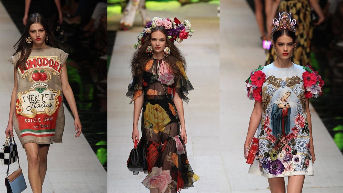 En sus estampados están representados todos esos símbolos con los que asociamos al país mediterráneo: flores como los girasoles y las rosas, pasta, pan, peces, galletas, muñecas, tenedores, cucharas, pizza, bebidas, símbolos religiosos e interiores de una iglesia... En definitiva, lo que es la #DGFamily y todos los clichés del sur de Italia.