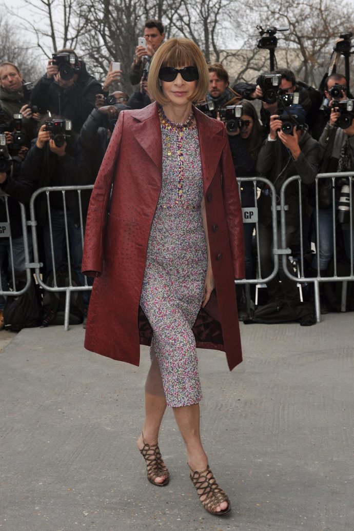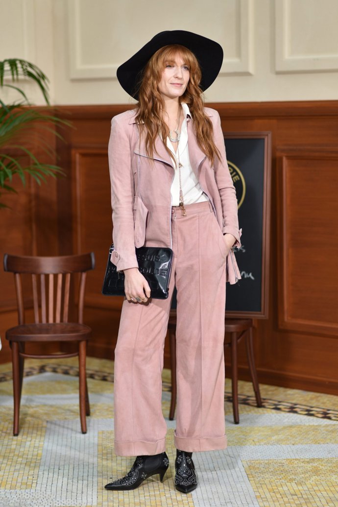 Anna Wintour, la editora jefe de VOGUE USA, fiel a sus gafas de sol, llevaba un vestido estampado de flores y una gran gabardina de piel en tono granate. A destacar también el look Florence Welch, la componente del grupo Florence + The Machine, que acudía con un pantalón y chaqueta en tono rosa palo, muy a su estilo indie complementado con un gran sombrero en tono negro.