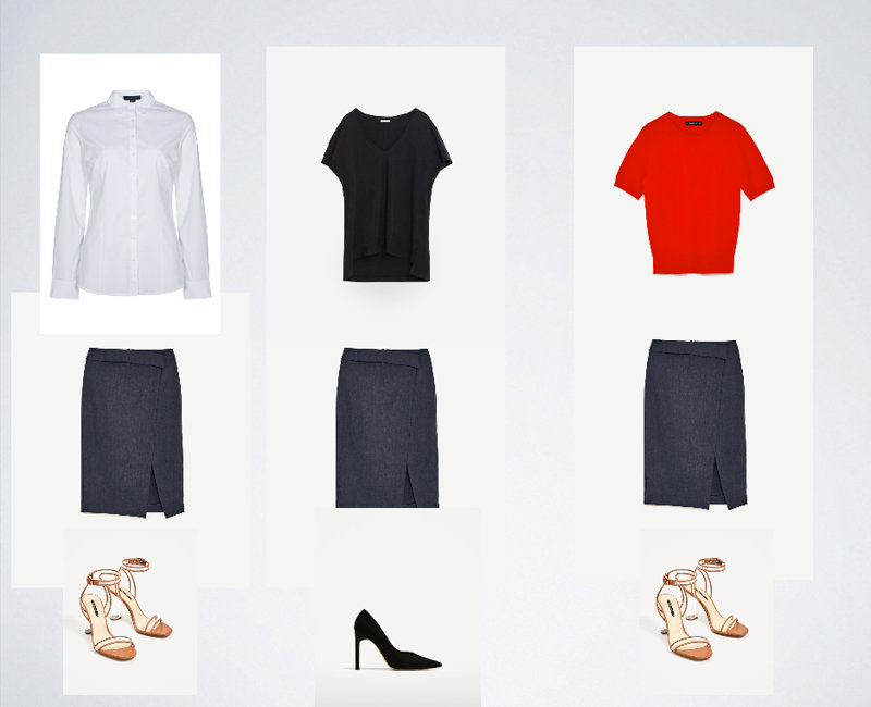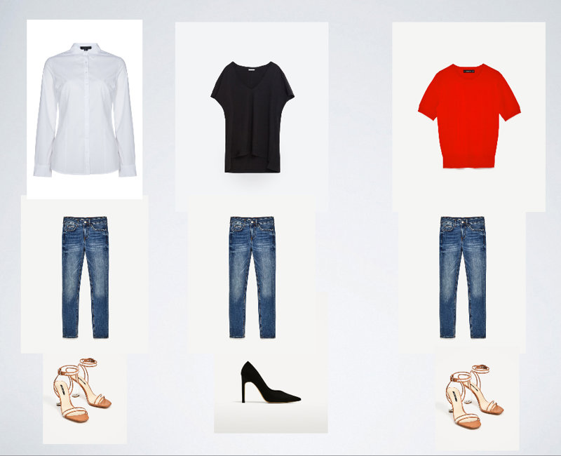 Con tan solo dos pares de zapatos puedes conseguir estos 9 looks. Para que combinen con las prendas que ya hemos descrito es importante que unos sean de salón en un color oscuro y los otros unas sandalias en nude.