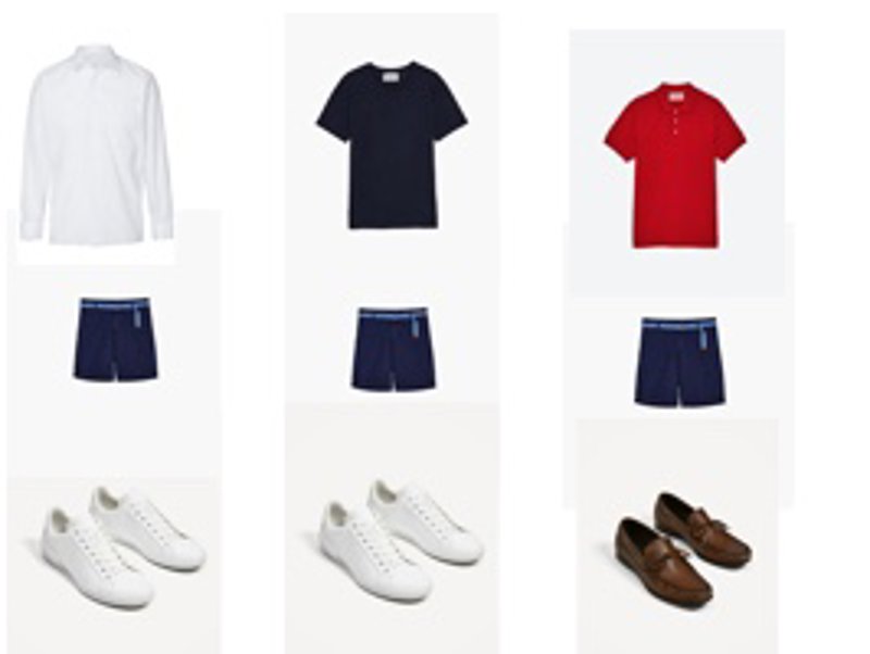 LOOK Nº1: Camisa blanca + falda oscura o pantalón corto en caso de chicos + sandalias o zapatillas blancas para el look de los chicos