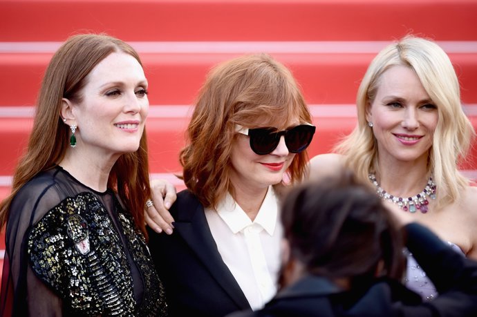 Julianne Moore. El negro es un color sobrio, pero ella brilló -literalmente- con un modelo cuajado de paillettes de Givenchy Couture y joyas de Chopard. Junto a Naomi y Julianne posó una sencilla Susan Sarandon que ataviada con un traje chaqueta en negro y unas impresionantes gafas de sol, sin duda no dejó indiferente a nadie.