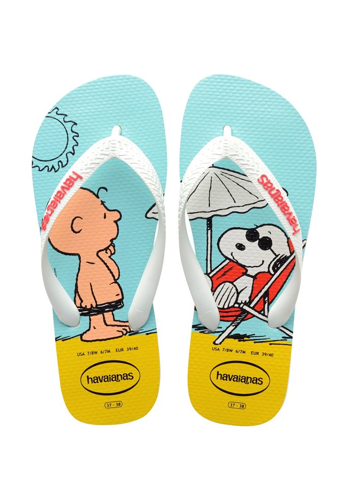 No solo hay modelo de película sino también... de cómic. Por ejemplo las chanclas de Snoopy, inspiradas en sus historietas y con modelos para niños y papás, y así ir en conjunto.