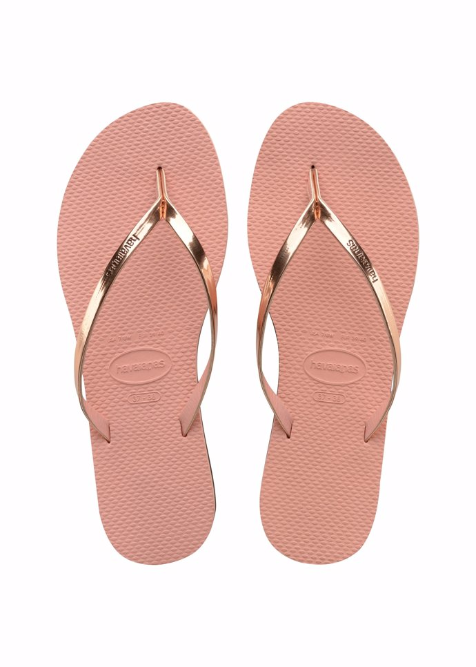 ...los modelos Slim Candy son los perfectos. Con colores pastel de lo más chulos de helados y adornos en las tiras que parecen caramelos. También puedes encontrar tonos pastel en las Havaianas YouMetallic, para darle un toque más roquero y brillar con los tonos metálicos. Incluyen un poco de tacón, y son ideales incluso para la noche.