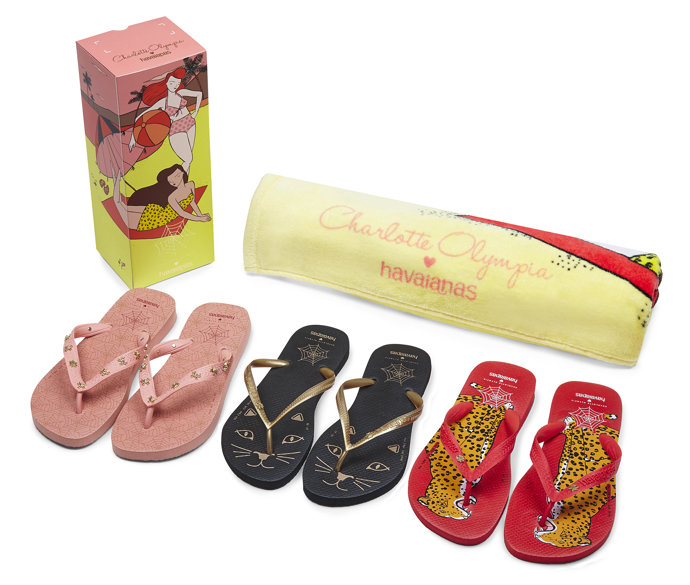 ¿Conocéis los diseños de Charlotte Olympia? Pues la diseñadora se une con la marca para deleitarnos con unos diseños de estilo retro. Con tres modelos que acogen todo lo que representa la firma: el dorado, rosa, rojo y print leopardo. Así como sus iconos favoritos: Kitty, el leopardo Bruce y la telaraña.... y encima, con una toalla de regalo.