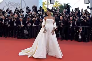 Más allá de esto, Rihanna decidió apoyar al equipo completo de Okja dejándose ver en la alfombra roja de su estreno. Así, Rihanna apostó por un impresionante diseño de Dior en blanco con corpillo y capa . Además, decidió lucir unas gafas de sol a juego con su completo outfit.