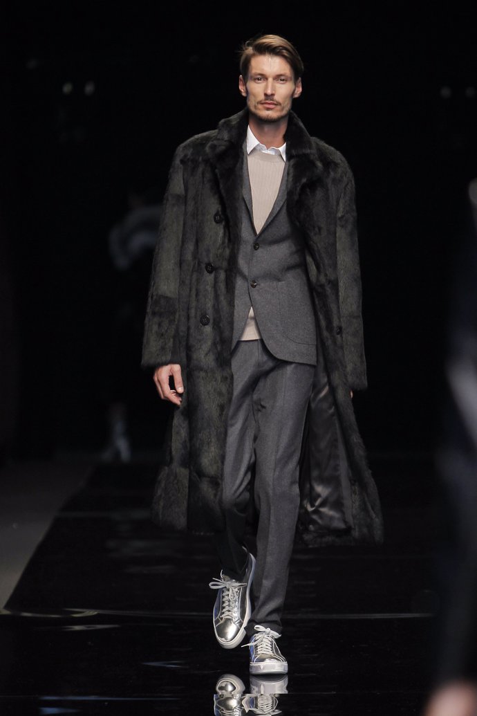 Las pieles cobran un gran protagonismo, como también lo hacen en la colección masculina, y son el mejor complemento en forma de gorro o cuello o en los abrigos. Tanto el hombre, con las combinaciones de diferentes cuadros de espiguillas y las zapatillas, y las mujeres, con los vestidos y tres cuartos acolchados, quieren marcar la diferencia.