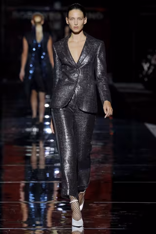 Cálidos tweeds, sedas, pieles teñidas en los tonos de la bandera francesa. Vestidos y sastres de cortes maestros con insinuantes aberturas. Abrigos y faldas envolventes de corte asimétrico. Camisas con interminables lazadas un guiño a Chanel, Dior e Yves Saint Laurent y a las musas como Françoise Hardy, Charlotte Rampling o Serge Gainsbourg. Y un homenaje a la mujer real.