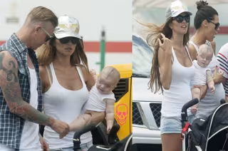 José María Gutiérrez 'Guti' y Romina Belluscio presumen de hijo durante un paseo por el puerto de Ibiza junto a unos amigos. La pareja se mostró muy pendiente de Enzo, su bebé.