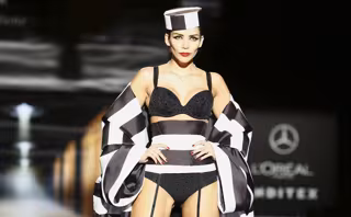 La modelo ha mostrado su imagen más sexy y explosiva con dos conjuntos lenceros que han dejado boquiabiertos a todos los presentes y demostrando que es una mujer de curvas y armas tomar. El primer estilismo nos recordaba a una azafata de los años 60 en su versión más sensual, para después cerrar el desfile con un conjunto de rayas horizontales como si de una presa se tratase. Dos diseños que han coronado a Rosanna que pisaba con fuerza y seguridad la pasarela.