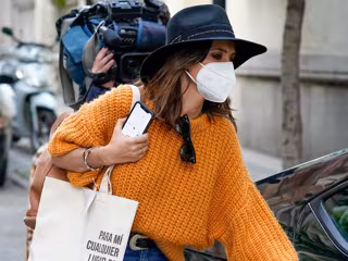 "Para mí cualquier lugar es mi casa si eres tú quien abre la puerta" un mensaje precioso que pertenece a Elvira Sastre y que la periodista ha lucido con un jersey de punto ancho en tono naranja y un jeans ancho. Además, Sara ha optado por ponerse un sombrero negro para darle a este look un toque más sofisticado.