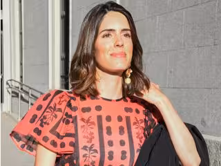 Un look con un punto arriesgado que ha complemetado con sandalias de terciopelo en color frambuesa, bolso de mano de piel en negro, su media melena suelta ligeramente ondulada y joyas llamativas: pendientes largos y brazalete rígido en forma de flor en color dorado. Sofisticación en estado puro y la inspiración que necesitábamos para convertirnos en la invitada perfecta en cualquier evento especial.