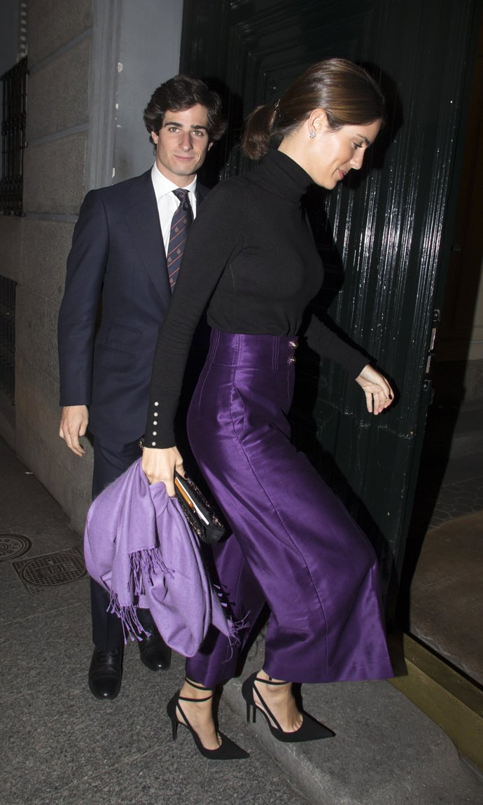 La mujer del futuro duque de Alba apareció en la noche madrileña con un look digno de admirar. La it girl combinó un sencillo jersey negro de cuello cisne con unos pantalones de tiro alto y pata de elefante. La joven se tomó lo de 'antes muerta que sencilla' muy al pie de la letra demostrando que ni el frío ni los adoquines de Madrid podían con su tacón de aguja.
