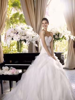 Una novia elegante y sofisticada recorrerá el camino hacia el altar con vestidos llenos de fantasía y glamour caracterizados por la nobleza de los tejidos más exquisitos. Desde propuestas frescas donde las líneas sencillas se convertirán en una apuesta segura para aquellas novias que no necesiten demasiados ornamentos para sentirse seguras, hasta opciones más románticas como los clásicos trajes palabra de honor con faldas de tul con mucho vuelo.