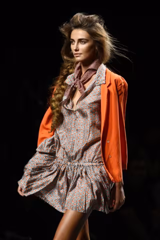 Después de un impactante desfile de lencería, en el que el encaje y los tonos pastel están a la orden del día, las modelos pasan de los aires "vintage inspirados en la bloguera Tavi y la modelo Tati Cotlliar con referencias college" y juego de niñas empollonas, a un estilo mucho más hippy.