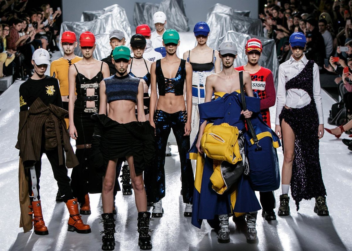 5. La rebeldía de María ke Fisherman. Los diseñadores creativos de la firma llevaron al extremo la tendencia athleisure mientras, de fondo, se escuchaba música bakalao que tan de moda estuvo a los años 90. Sus mujeres visten con plumíferos, chandals, gorras y botas de montaña en tonos como el blanco, el rojo, el azul y el amarillo.