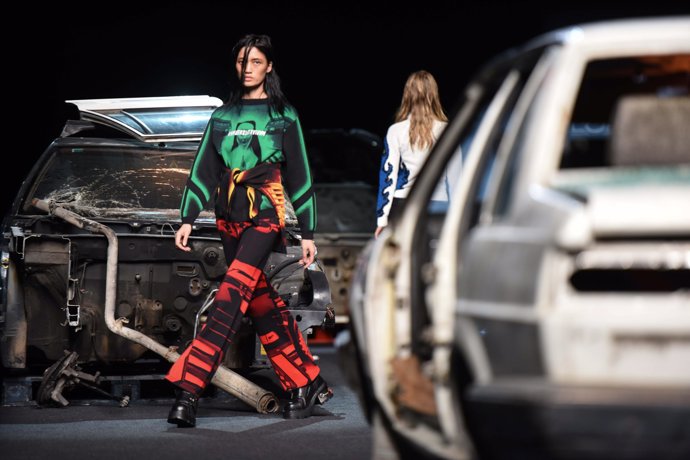 Un coche desguazado en el backstage. Modelos correteando de un lado para otro o descansando en las escaleras que hay detrás de las pasarelas, diseñadores dando el último retoque a las colecciones y periodistas en busca de una historia o simplemente dando un paseo para despejarse entre desfile y desfile. Eso es lo más común, sin embargo, hay veces que el backstage hay sorpresas¡un coche desguazado que empujaban varios fornidos hombres hacia la pasarela que después llenaría María Ke Fisherman!
