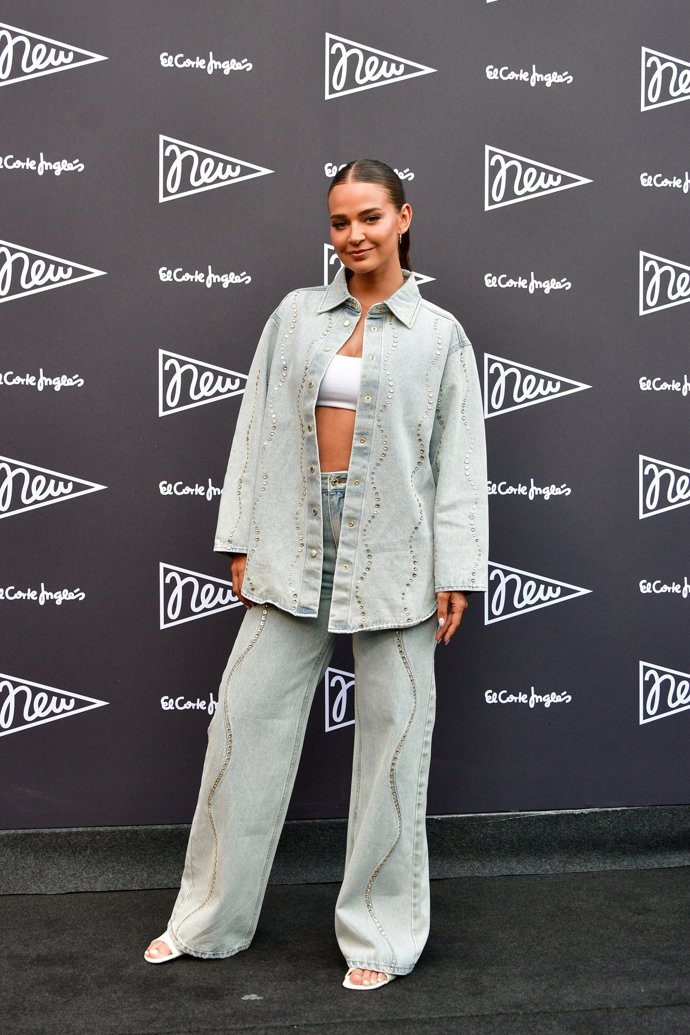 Laura Escanes. Apostando por la comodidad, la influencer se ha decantado por un conjunto dénim con pantalón ancho y sobrecamisa con detalles metalizados, que ha combinado con top blanco tipo bandeau con el que ha presumido de abdomen plano.