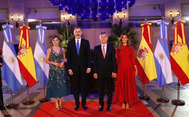 Durante la cena de gala en honor a los Reyes de España por parte del presidente, Mauricio Macri, y la dama de Argentina, Juliana Awada, la Reina Letizia impactó. Para esa gran noche, la monarca lució un vestido midi -el más escotado que recordamos- con aplicaciones doradas y perlas florales con el que se mostró de lo más elegante, cómoda y radiante ante las cámaras.