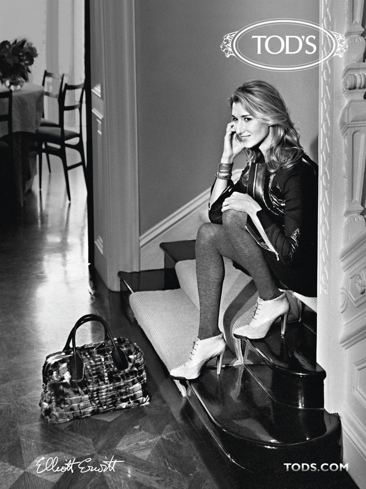Con su ingenioso y afilado ojo, Erwitt usa Londres y la campiña inglesa como fondo para capturar la innata elegancia y el estilo desenvuelto de los protagonistas para crear imágenes que evocan la tradición y el espíritu fuertemente contemporáneo de Tod's. Juguetonas y relajantes, estas imágenes trasmiten una elegancia espontánea, que solo el mejor del "Made in Italy" puede evocar.