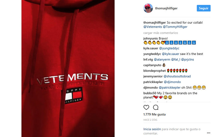 "Es street style de lujo", han dicho desde Tommy. "Para nosotros es todo un lujo que una firma tan fresca como Vetements quiera trabajar con nosotros", han apostillado. De momento, pocos detalles más se conocen de esta nueva línea, salvo que sus precios serán similares a los de Vetements, con sudaderas de 1.119,60 dólares y camisetas de 719,70 dólares.