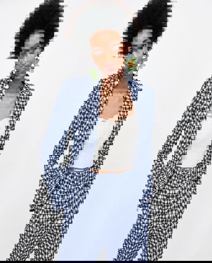 Logrando vender todas las unidades del outfit, Zara ha sacado a la venta de nuevo este traje. Esta vez, lo ha hecho con un estampado en cuadros vichy en todos azul marino y blanco, otra de las grandes tendencias de esta temporada.