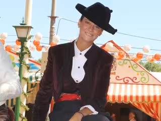 Y a pesar de los 30º que ha alcanzado la capital andaluza, ha desafiado el calor con un maravilloso look de corto con torera goyesca de terciopelo burdeos con detalles de pedrería bordados en negro, chaleco a juego, camisa blanca, fajín rojo con estampado floral, falda larga, sombrero típico cordobés y su larga melena recogida en un moño bajo. Un look andaluz a más no poder con el que la hija de la infanta Elena ha arrasado y con el que ha demostrado que no hay que vestirse de flamenca para representar a la perfección el espíritu de la Feria de Abril.