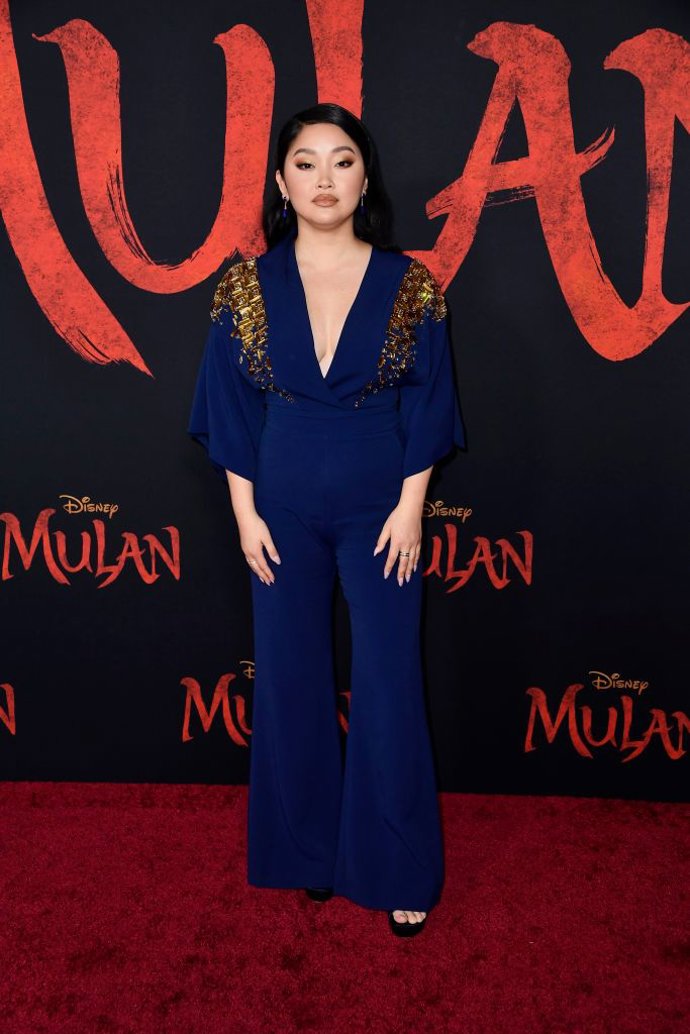 Así que, el Dolby Theatre de Hollywood se vistió ayer de gala para acoger la premiere mundial de la película, en la que la actriz Yifei Liu, encargada de dar vida a Mulán, acaparó todas las miradas en la alfombra roja con su impresionante vestido dorado de princesa. Una prenda de la colección otoño/invierno 2019 de Elie Saab, compuesta por un cuerpo encorsetado, palabra de honor y con escote corazón y una amplia falda con cola bordada con hilos de seda dorada y lentejuelas. Una combinación perfecta para su debut en Disney que acompañó con unos simples pendientes en forma de hojas y la melena al aire peinada en hondas suaves.