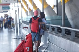 Adara Molinero y Rodrigo Fuertes aterrizan en Madrid tras su viaje a Ibiza
