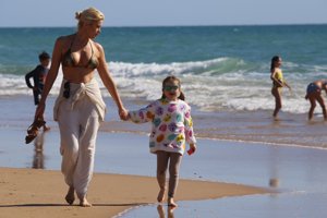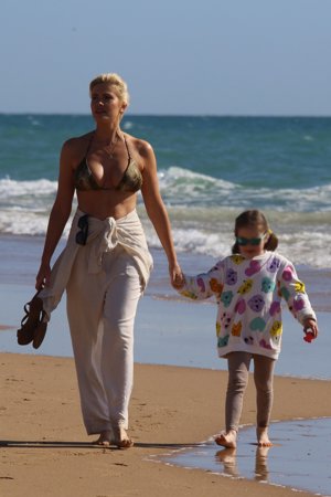 Adriana Abenia presume de cuerpazo en bikini durante una escapada familiar a la costa gaditana