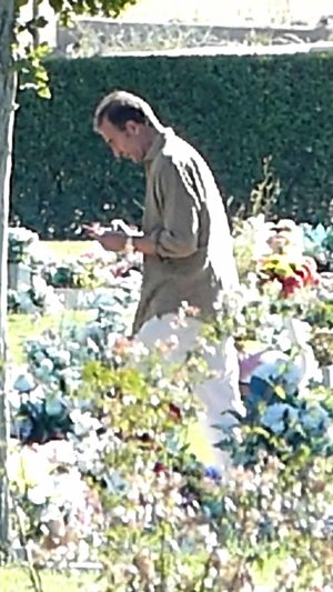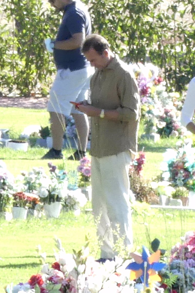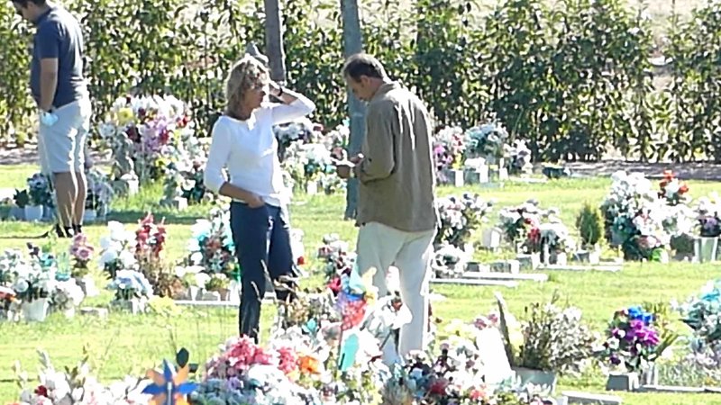 Alessandro Lequio abatido frente a la tumba de su hijo Aless