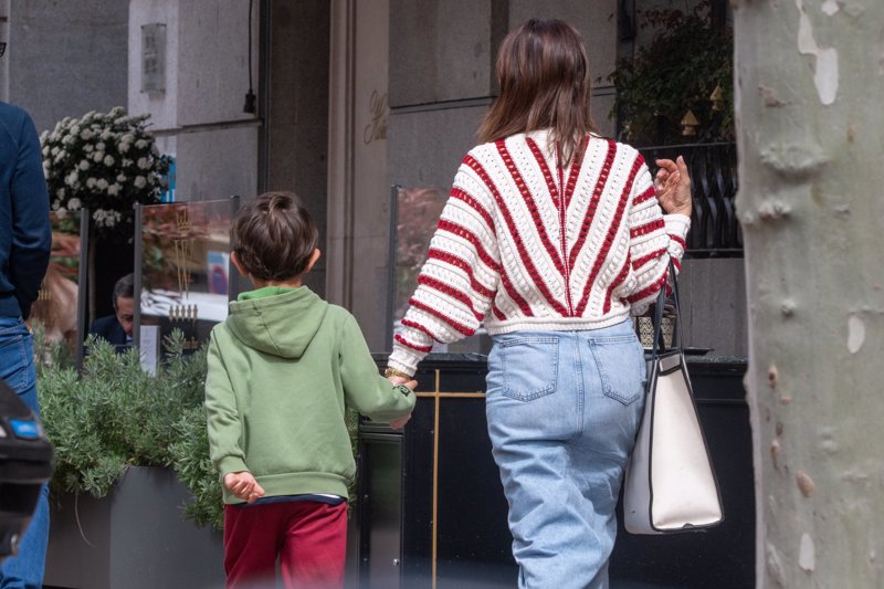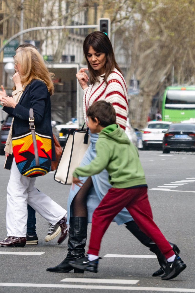 Álvaro Muñoz Escassi, María José Suárez y su hijo: estampa familiar en pleno centro madrileño