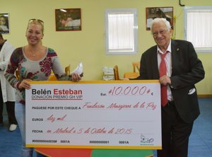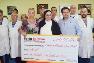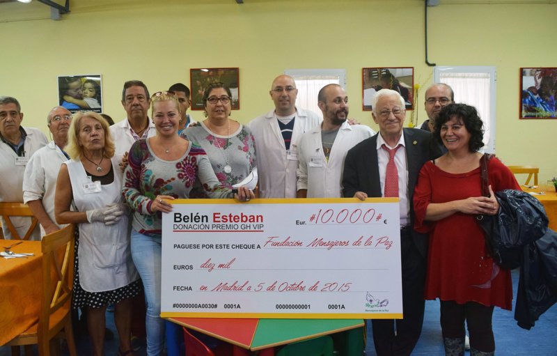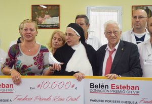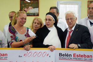 Belén Esteban llora emocionada al donar 10.000 € a Sor Lucía y al Padre Ángel