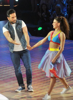 Bustamante ayuda a Yana Olina con su problema con los globos en pleno baile