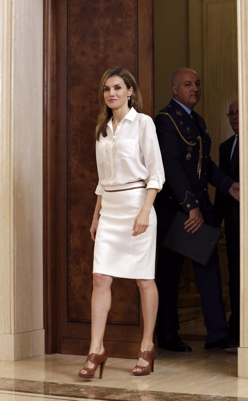 La camisa blanca, la gran baza de la princesa Letizia para sus faldas