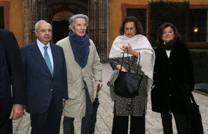 Cayetano y Fernando Martínez de Irujo, junto a Alfonso Díez, en el inicio del Centenario de la Duquesa de Alba