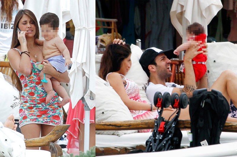 Cesc Fábregas con Daniella Semaan y su hija Lía en Ibiza acompañados de Antonella Roccuzzo y su hijo Thiago