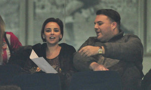 Chenoa, divertida noche de partido en el Vicente Calderón junto a un amigo