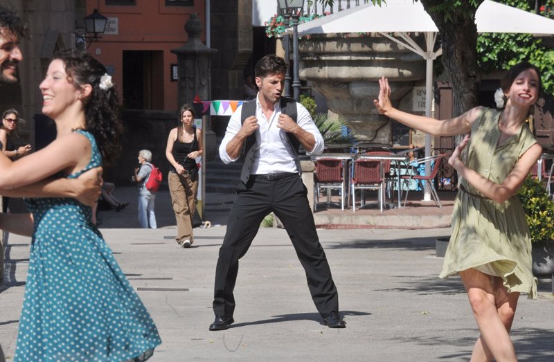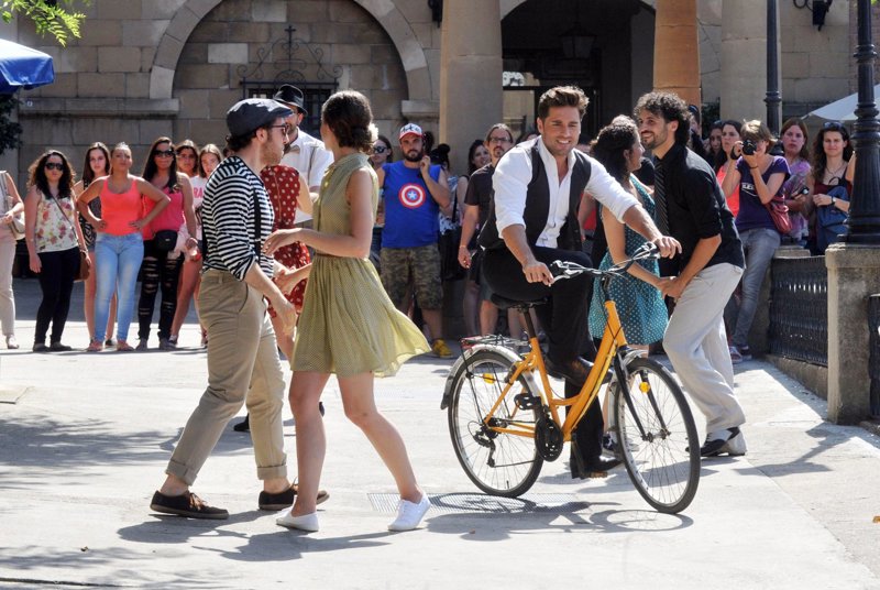 David Bustamante, feliz, cantando bajo la lluvia