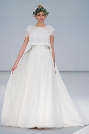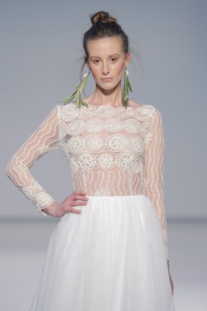 El eclecticismo de las novias de Pol Núñez combina sedas y organzas con encajes