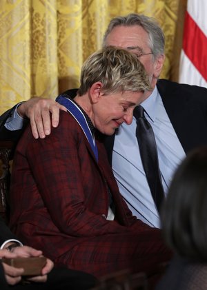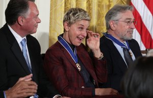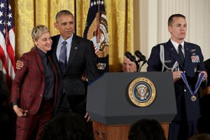 Ellen DeGeneres llora al recibir la Medalla de la Libertad de la mano de Obama