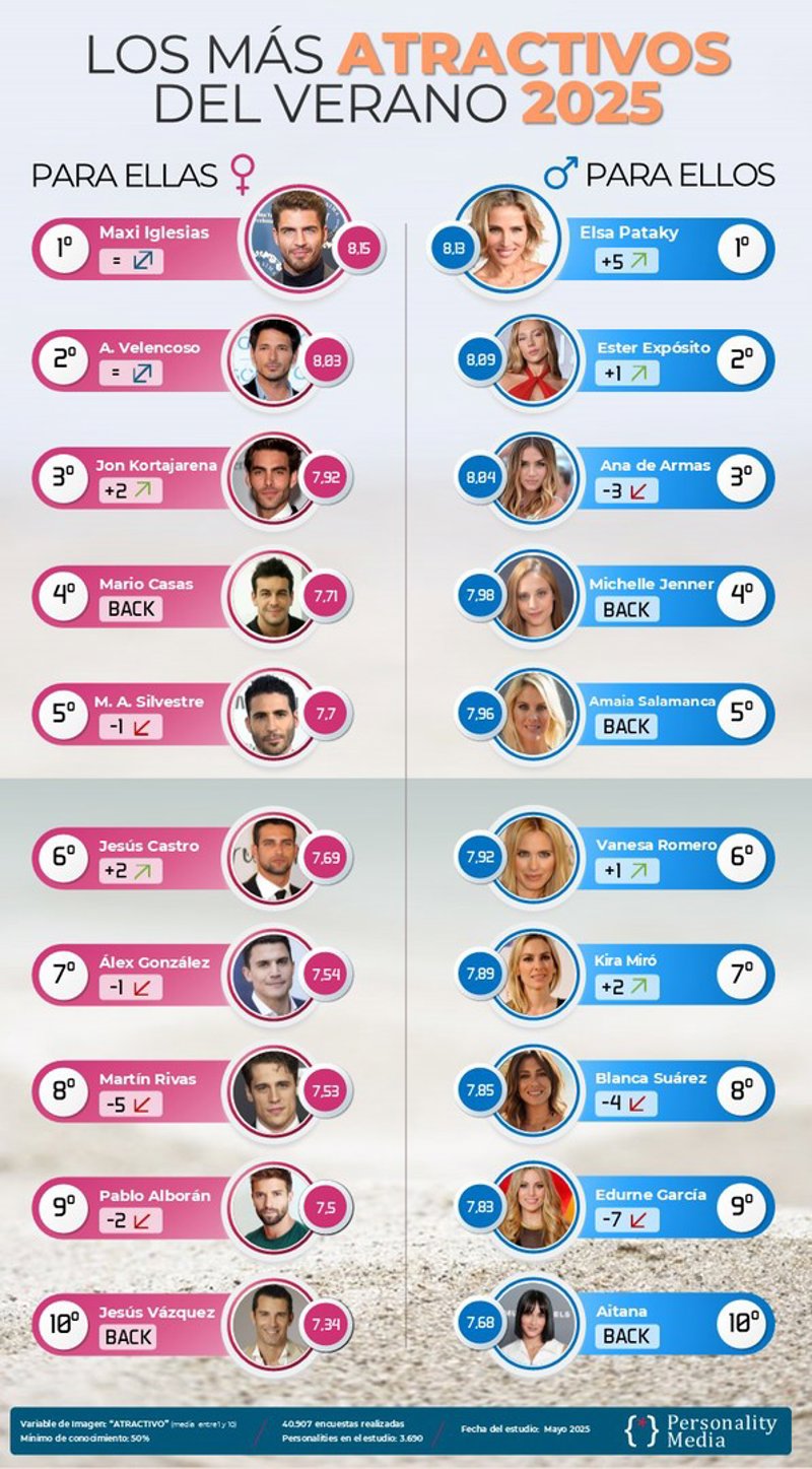 Elsa Pataky y Maxi Iglesias lideran el 'Top 10' de los más atractivos del verano