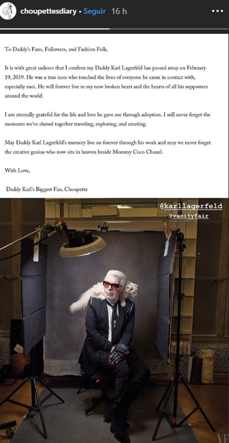 La emotiva carta de la gata Choupette a su papá Karl Lagerfeld y a Chanel