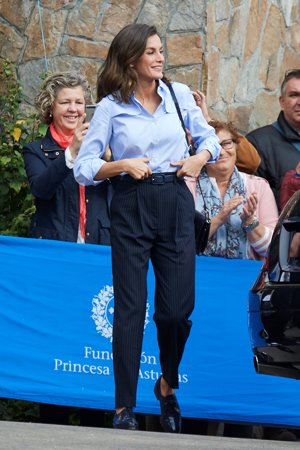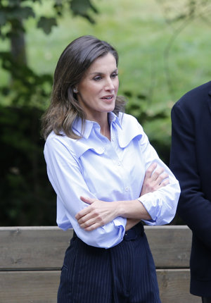 Exclusiva: La Reina y el efecto Letizia de su camisa blanca y azul de Imiloa