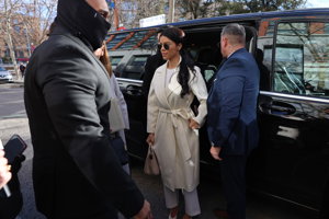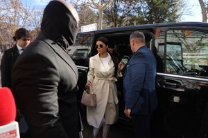 Giorgina Uzcategui, tranquila y de blanco impoluto ante su reencuentro con Ilia Topuria en los juzgados