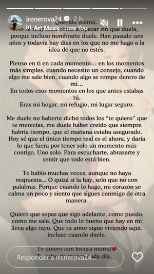 Irene Rosales, su desgarradora carta a su madre en el 6º aniversario de su muerte