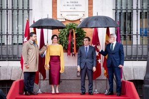 Isabel Díaz Ayuso impacta con un look rojo y amarillo en la entrega de las Grandes Cruces del 2 de Mayo
