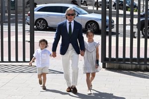 Juan Peña y Sonia González, emocionados en la primera comunión de su hijo Tristán